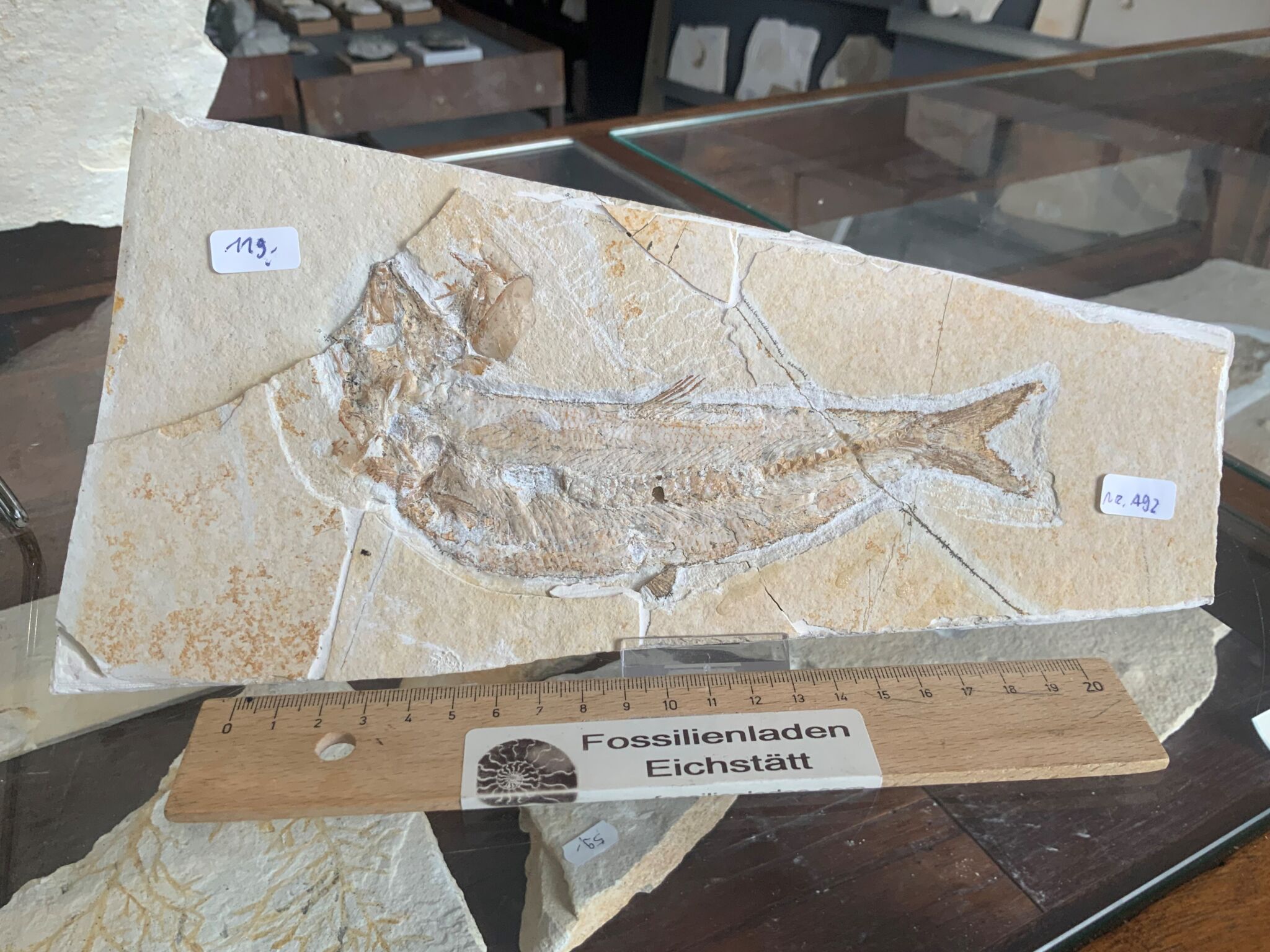 Tharsis dubius, Fundort: Mühlheim, Mörnsheimer Schichten, Stratigrapie: Oberjura, Tithonium, Solnhofen-Formation, Malm zeta 3, Plattenstärke ca. 1 cm, Gewicht ca. 0,69 kg. Durchmesser Fossil ca. 17 cm. Günstig!