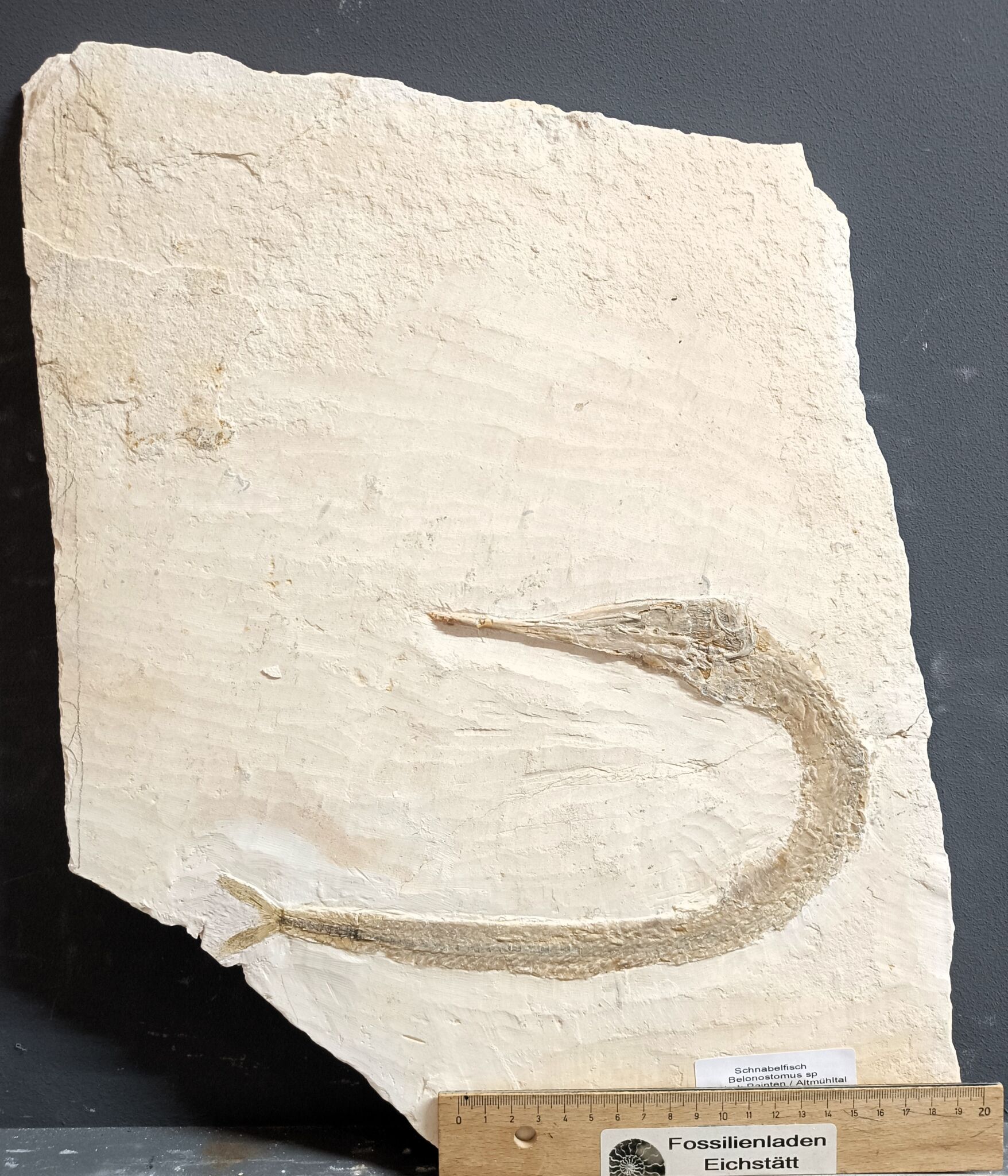 Belonostomus sp Fundort: Painten / Altmühltal Alter ca. 135 Mio. Jahre Nur 440,-!! Fossilienladen.com Nr. A10