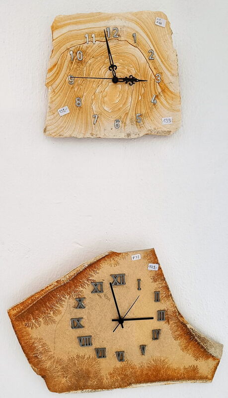 verschiedene Uhren auf Solnhofer Plattenkalk, Handarbeit, deutsche Markenuhrwerke (UTS, Junghans ...) ab 109,- bis 139,- Euro